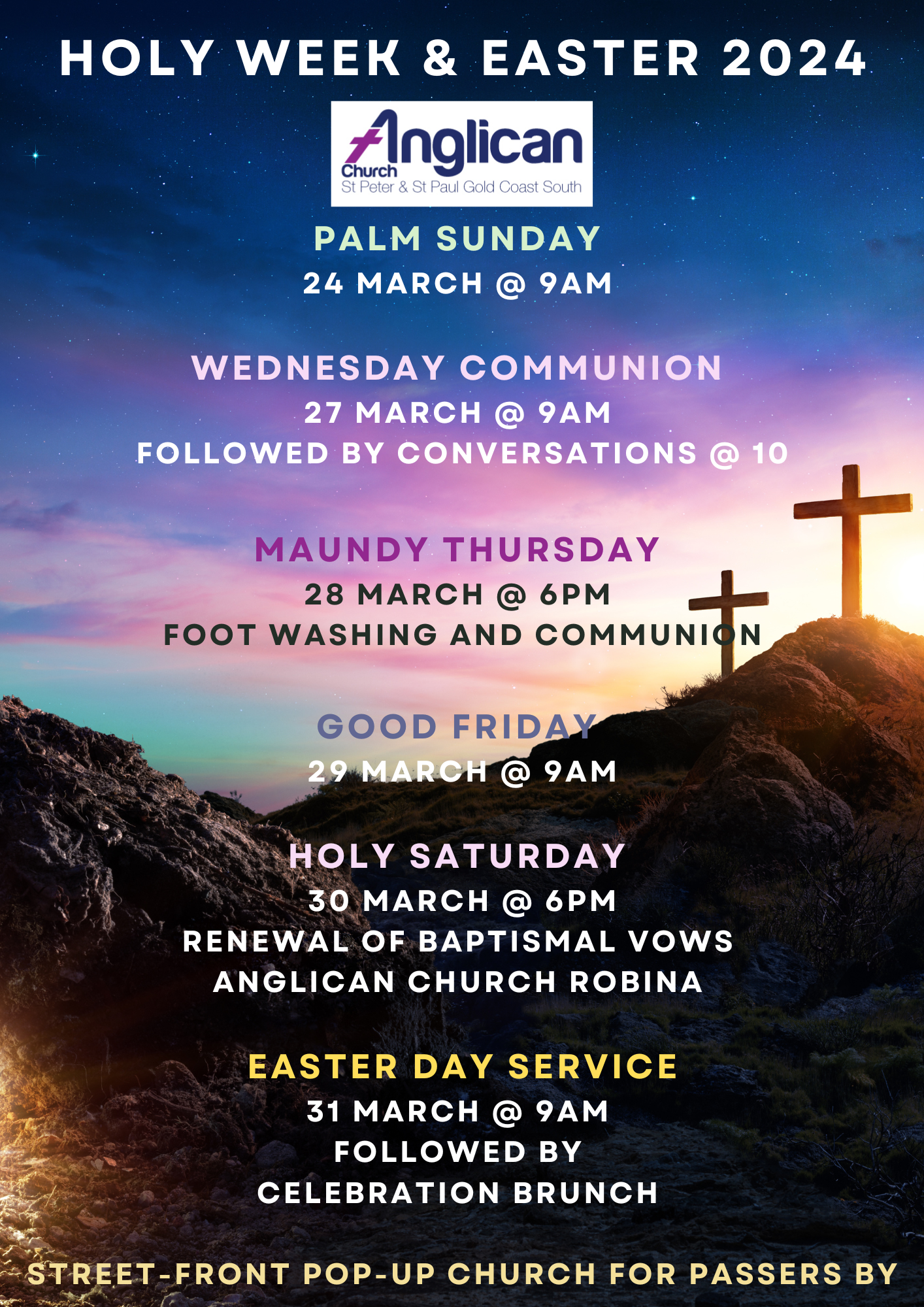 For those interested in attending local Anglican Parish Easter services, please refer below to the details provided in the Chaplain’s article.
