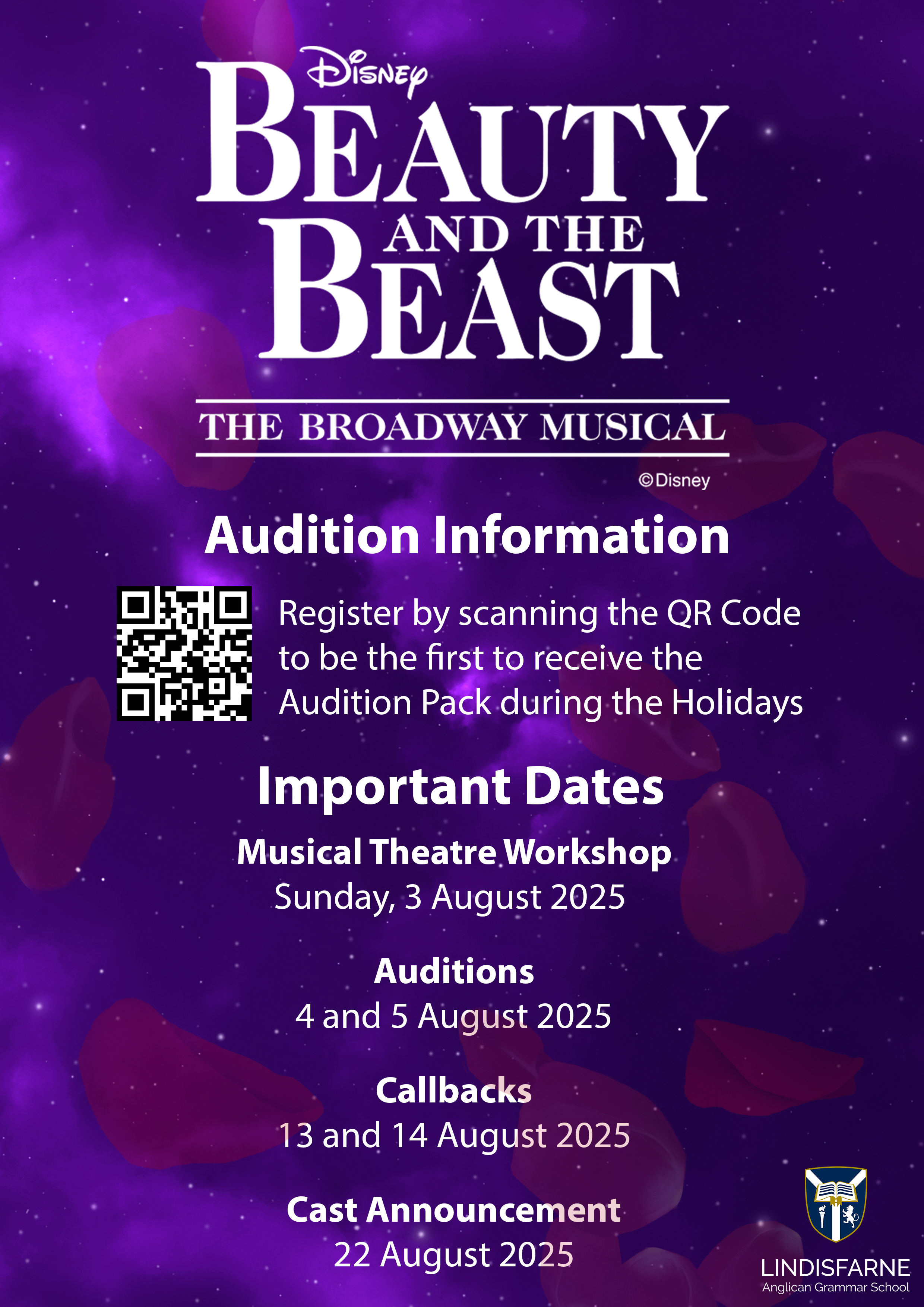 Auditions will be held in Week 3 of Term 3, and we would love to see as many students as possible involved, whether on stage or behind the scenes. To register your interest and receive your Audition Pack, simply scan the QR code below. Make sure to fill in the registration form to ensure you receive all audition details and updates.